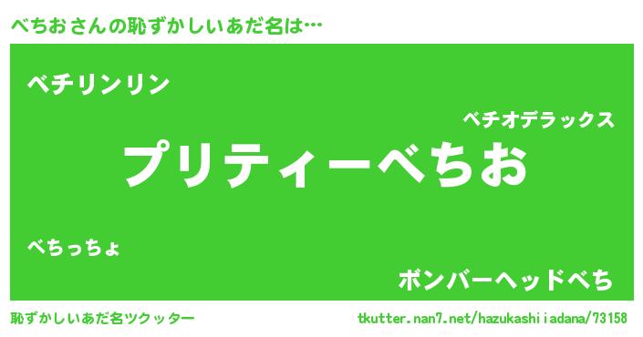 | 意味不明あだ名 | 『ペロリンべちお』『自称べちお』 |
