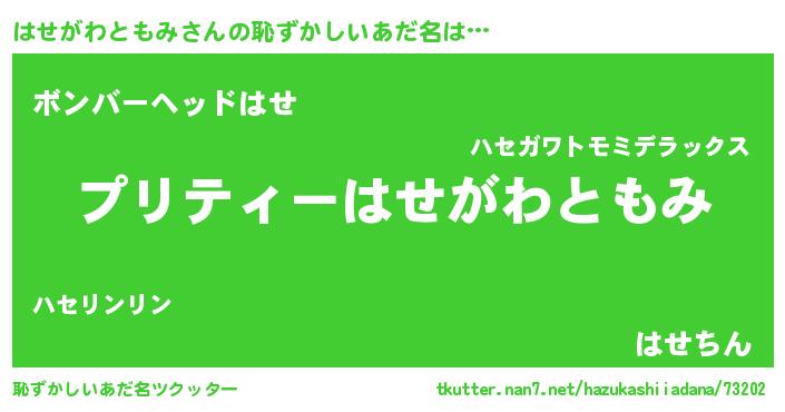 | ヘコむあだ名 | 『はせっふぃ~』『はせがわともみ(笑)』 |