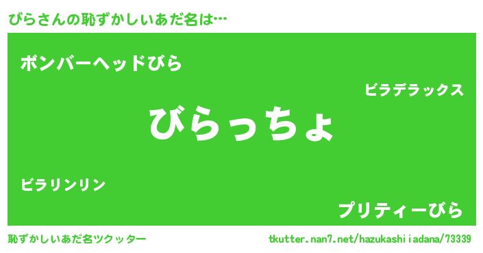 | ヘコむあだ名 | 『牛乳』『びらっふぃ~』『びらを』 |