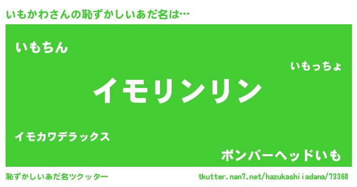 | 胡散臭い通販商品みたいなあだ名 | 『信頼と実績のサプリメント…その名も「いもかわ」』 |
