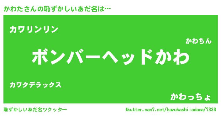 | 女子向けラノベタイトル風あだ名 | 『死神かわたの再婚』『かわた様がみてる』 |