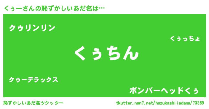 | 意味不明あだ名 | 『永久保存くぅー』『たけのこ科くぅー属』 |