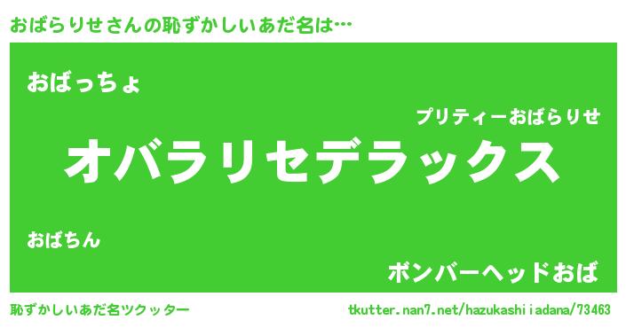 | 男性向けラノベタイトル風あだ名 | 『Re:おばらりせから始める異世界生活』 |
