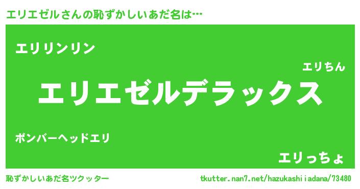 | 男性向けラノベタイトル風あだ名 | 『うちのエリエゼルが世界を掌握している!』 |