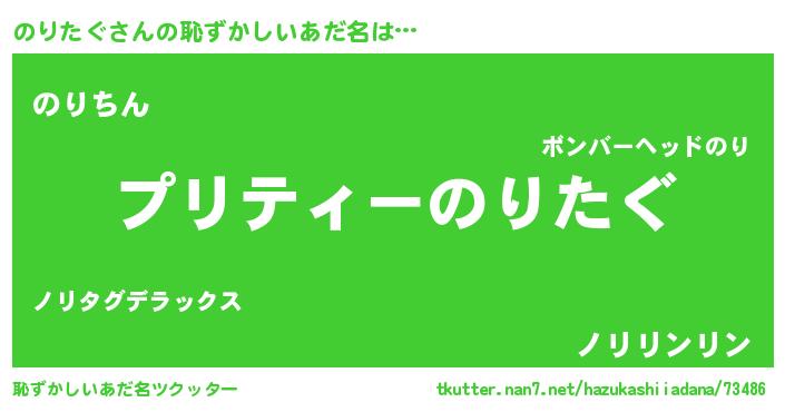 | 意味不明あだ名 | 『ペロリンのりたぐ』『永久保存のりたぐ』 |