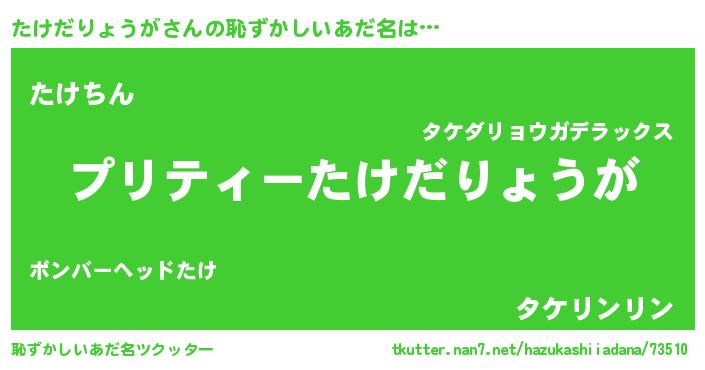 | ヘコむあだ名 | 『たけにー』『たけだりょうが(笑)』 |