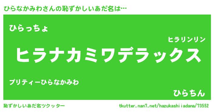 | 意味不明あだ名 | 『自称ひらなかみわ』 |
