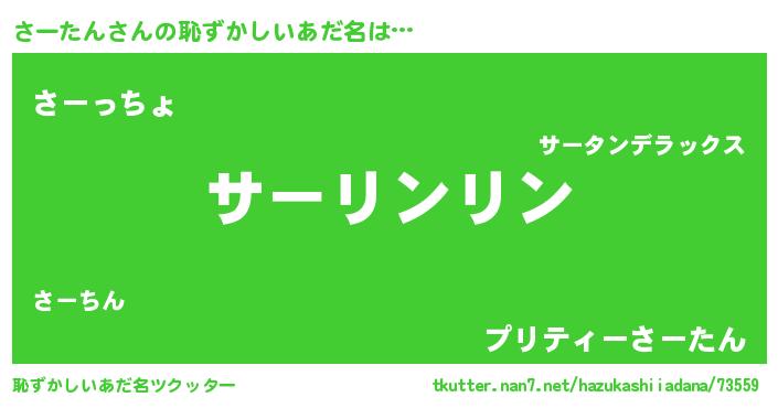 | 男性向けラノベタイトル風あだ名 | 『ダンジョンにさーたんを求めるのは間違っているだろうか』 |