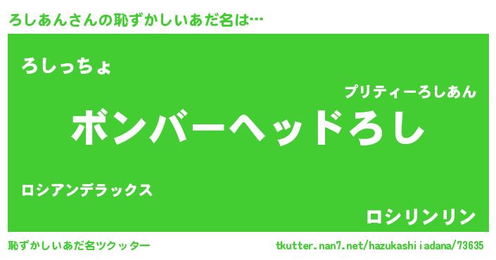 | ヒーロー風カッコイイあだ名 | 『慈愛の使者ろしあん』『仮面ロシダー』 |