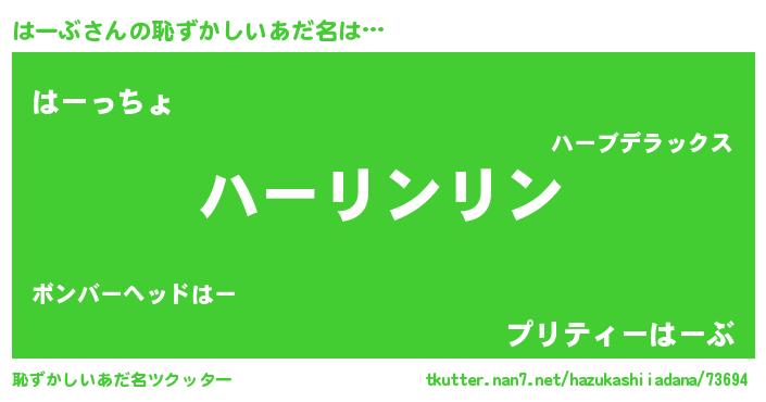 | ヒーロー風カッコイイあだ名 | 『魔戒騎士ハー』『ウルトラはーぶマン』 |