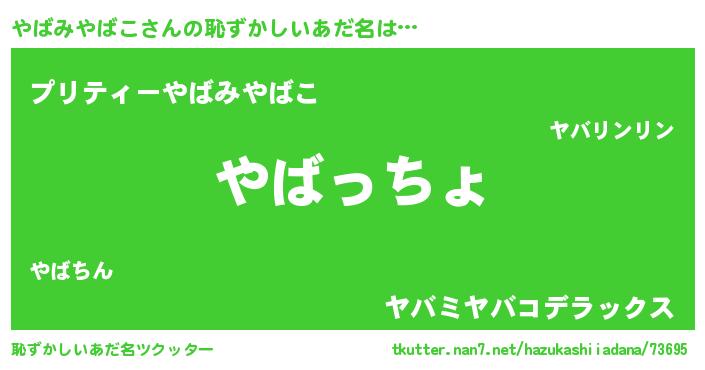 | 意味不明あだ名 | 『住所不定無職やばみやばこ(4歳)』 |