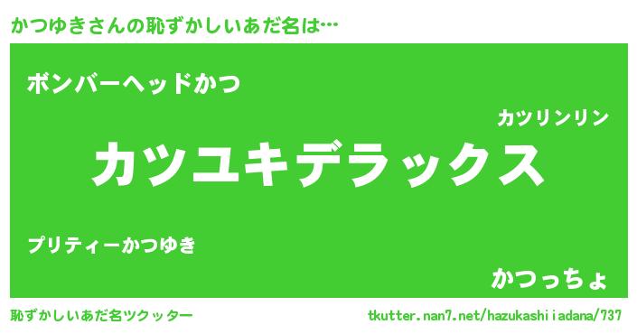 | 男性向けラノベタイトル風あだ名 | 『魔弾の王とかつゆき』 |