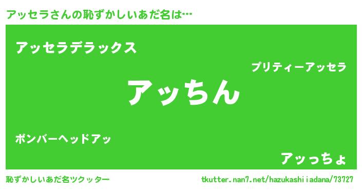 | 意味不明あだ名 | 『永久保存アッセラ』『自称アッセラ』 |