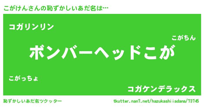 | ヘコむあだ名 | 『こがを』『こがけん(笑)』『豆乳』 |