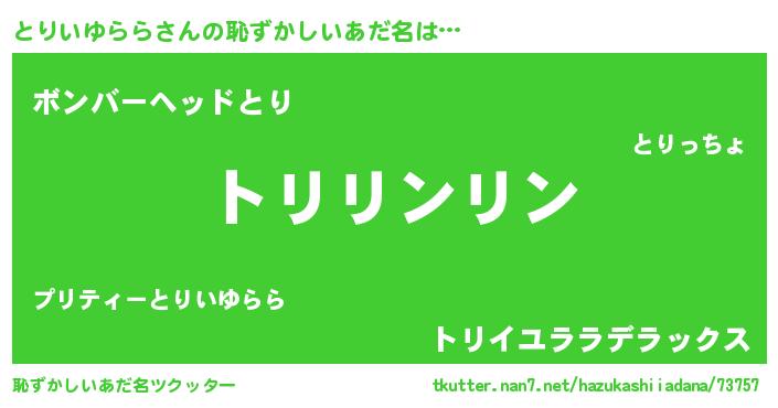| 意味不明あだ名 | 『住所不定無職とりいゆらら(8歳)』 |