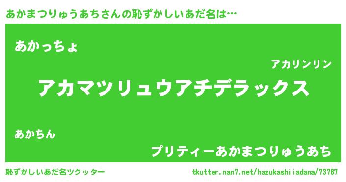 | 意味不明あだ名 | 『住所不定無職あかまつりゅうあち(4歳)』 |
