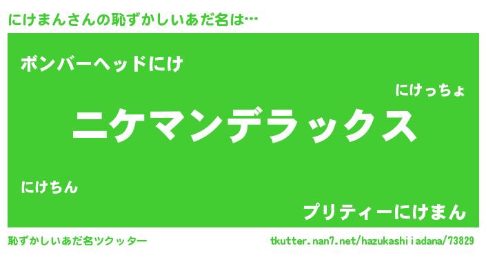 | 男性向けラノベタイトル風あだ名 | 『うちのにけまんが世界を掌握している!』 |