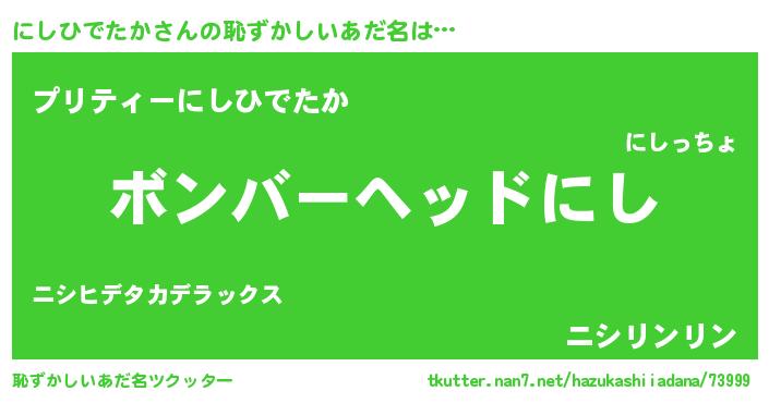 | 男性向けラノベタイトル風あだ名 | 『はたらくにしひでたかさま!』 |