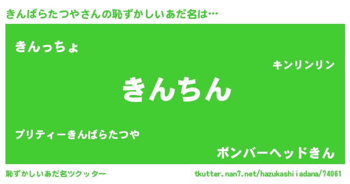 | 意味不明あだ名 | 『永久保存きんばらたつや』 |