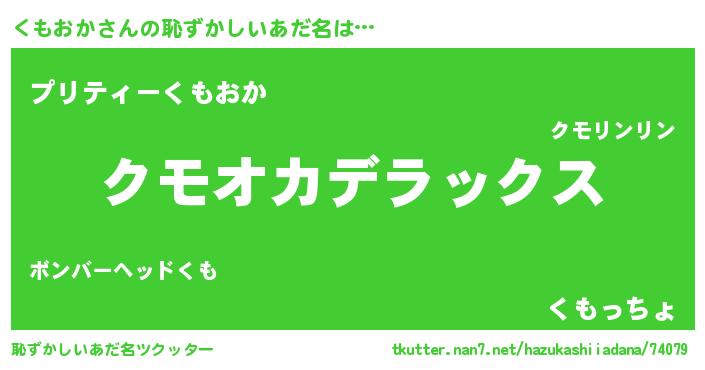 意味不明あだ名 | 『ヨモギ科くもおか属』『自称くもおか』 |
