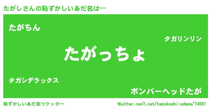 | 意味不明あだ名 | 『たがしフォーエバー』『永久保存たがし』 |