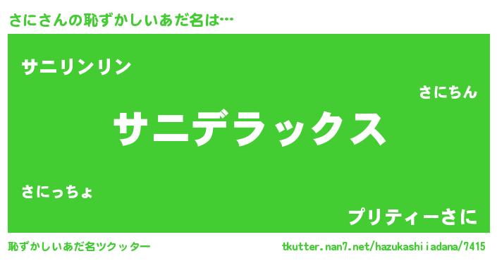 | 男性向けラノベタイトル風あだ名 | 『Re:さにから始める異世界生活』 |