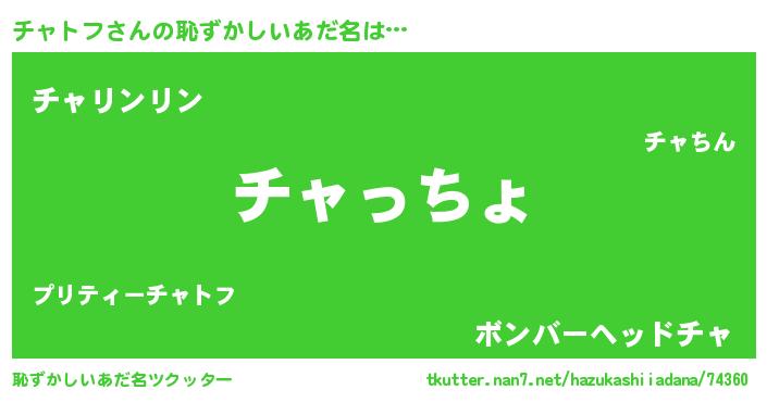 | 意味不明あだ名 | 『チャトフフォーエバー』 |