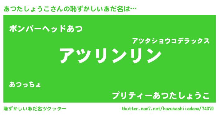 | ヘコむあだ名 | 『あつぷりん』『あつっふぃ~』 |