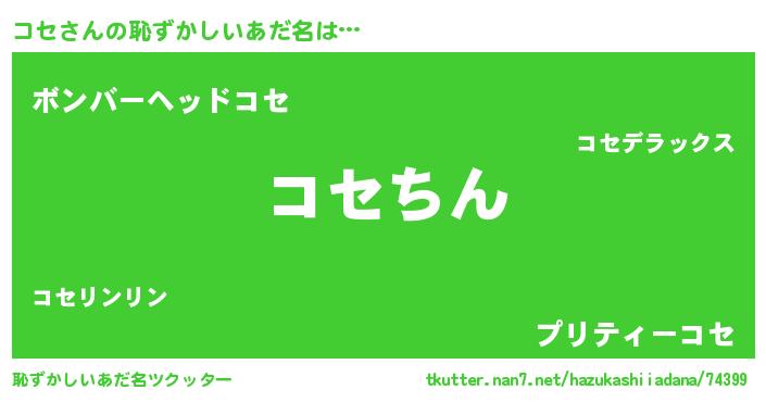 | 意味不明あだ名 | 『永久保存コセ』『眠気覚ましガムコセ味』 |