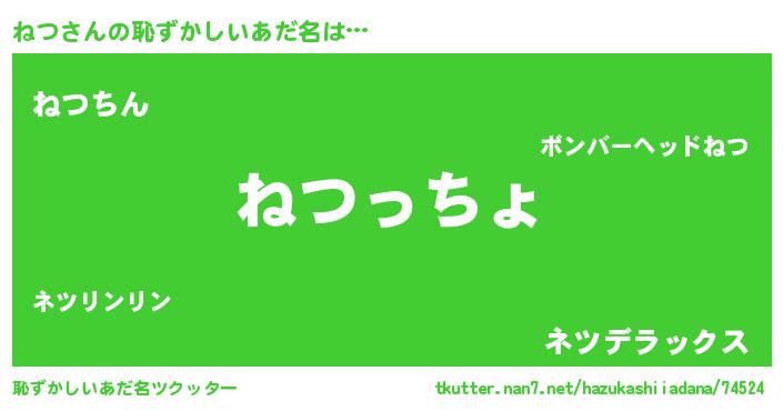 | 可愛いあだ名 | 『ねつちー』『ねつぷりん』 |