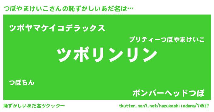 | 意味不明あだ名 | 『とにかく怪しいつぼやまけいこ』 |
