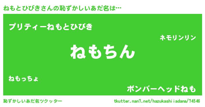 | ヘコむあだ名 | 『ねもとひびき(小並感)』『ねもふぇ~』 |
