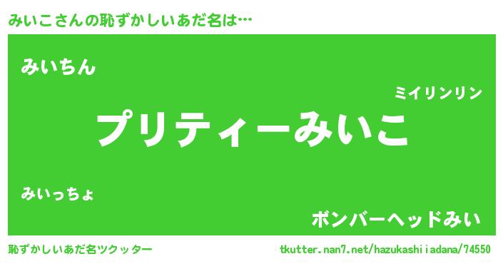 | 欧米人風あだ名 | 『マイケルみいこ』『ダルビッシュみいこ』 |