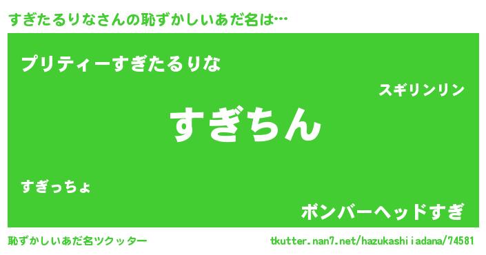| ヘコむあだ名 | 『すぎたるりな(爆)』『すぎにー』 |