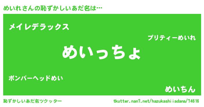 | ヘコむあだ名 | 『レバニラ』『めいれ(爆)』『めいを』 |