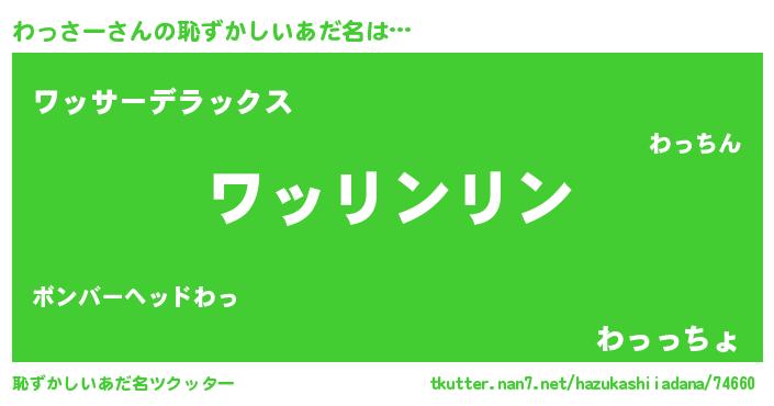| 女子向けラノベタイトル風あだ名 | 『わっさーは平凡を望む』『闇のわっさー』 |