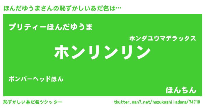 | ポケモン風あだ名 | 『ヒホンダユウマ』『ホーンイ』 |