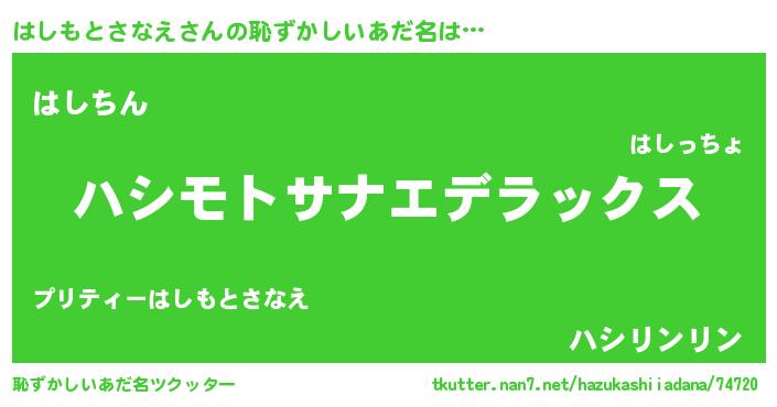 | 意味不明あだ名 | 『自称はしもとさなえ』 |