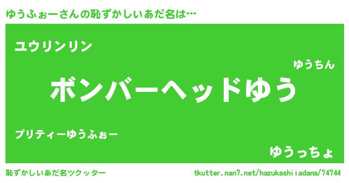 | ヒーロー風カッコイイあだ名 | 『慈愛の使者ゆうふぉー』『黄金騎士ユウ』 |