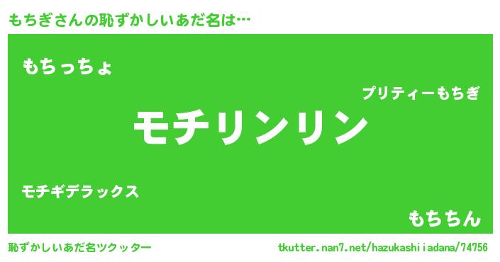 | 男性向けラノベタイトル風あだ名 | 『もちぎの嫁は女の子じゃないと思った?』 |