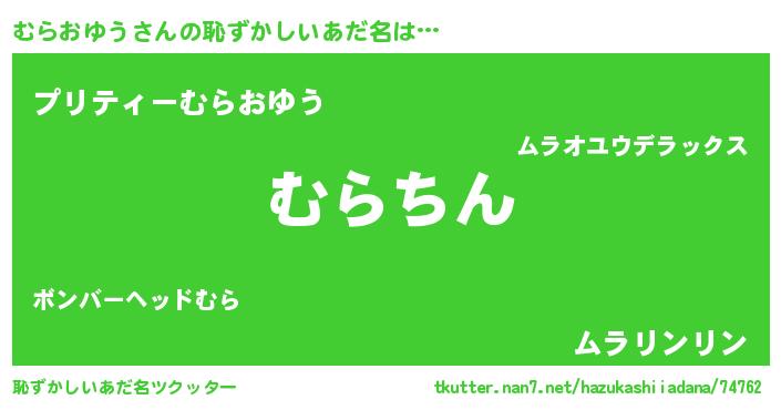| 意味不明あだ名 | 『永久保存むらおゆう』『自称むらおゆう』 |