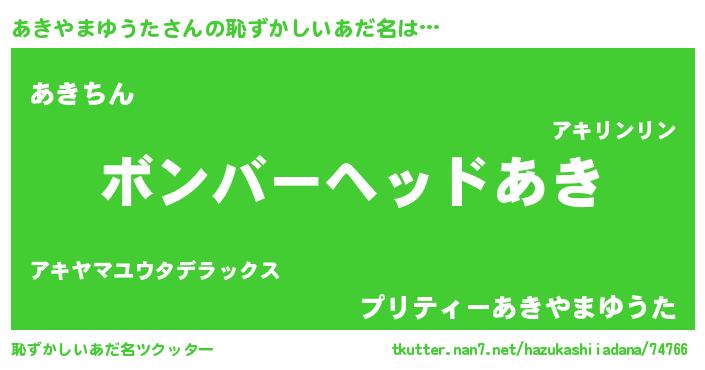 | ヘコむあだ名 | 『あきやまゆうた(遠い目)』『あきふぇ~』 |