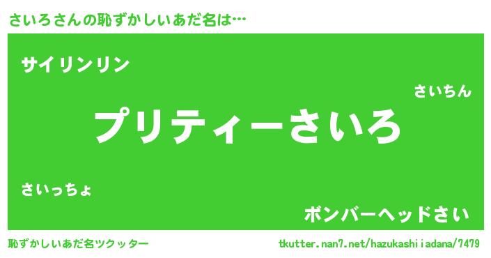 | 男性向けラノベタイトル風あだ名 | 『さいろの憂鬱』 |