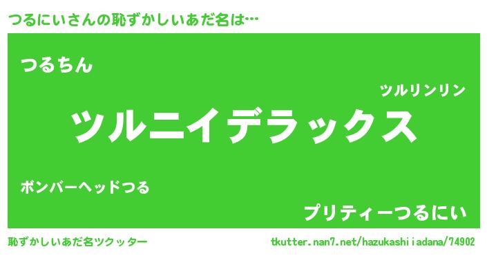 | 意味不明あだ名 | 『自称つるにい』『永久保存つるにい』 |