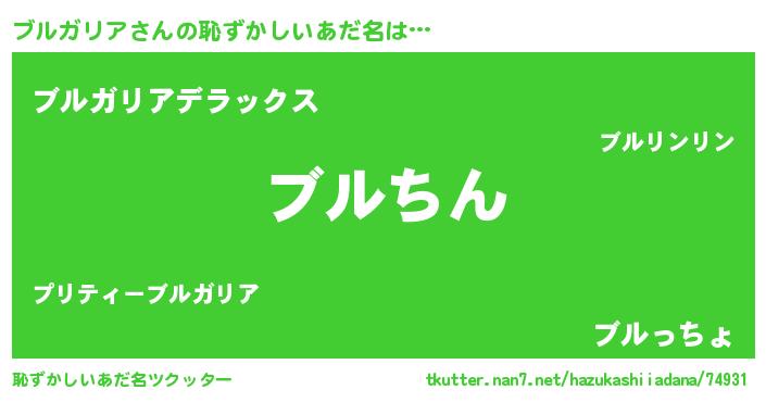 | 可愛いあだ名 | 『ブルぷりん』『ブルガリアママ』 |