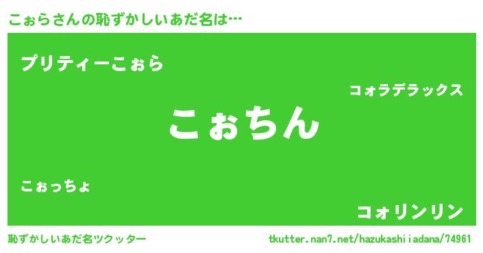 | 可愛いあだ名 | 『こぉぷりん』『こぉらママ』 |