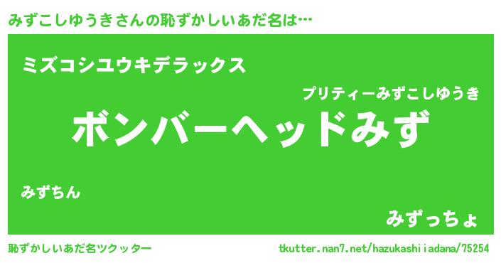 | ヘコむあだ名 | 『豆乳』『みずにゅー』『みずっ子』 |