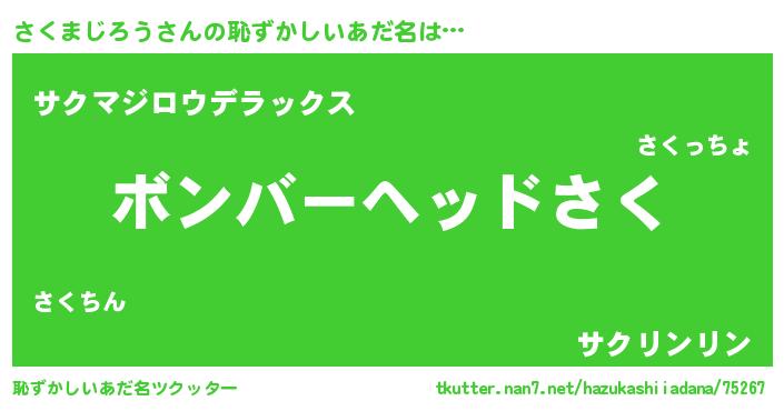 | 男性向けラノベタイトル風あだ名 | 『転生したらさくまじろうだった件』 |