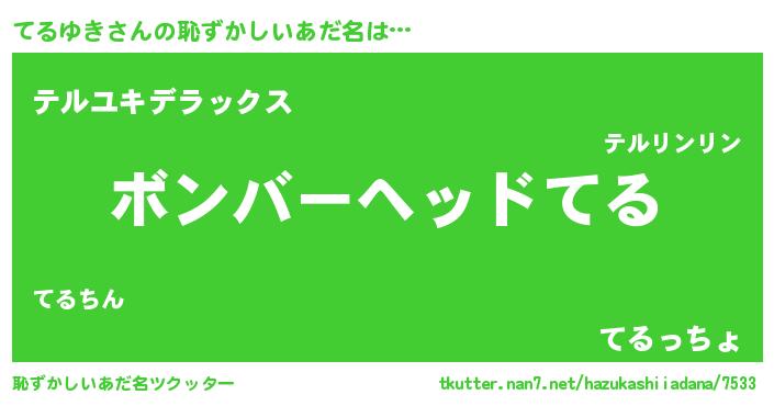 | ヒーロー風カッコイイあだ名 | 『慈愛の使者てるゆき』『天弓騎士テル』 |