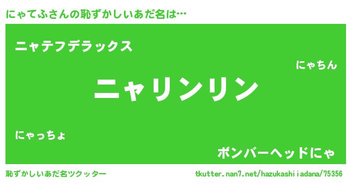 | 男性向けラノベタイトル風あだ名 | 『にゃてふの嫁は女の子じゃないと思った?』 |